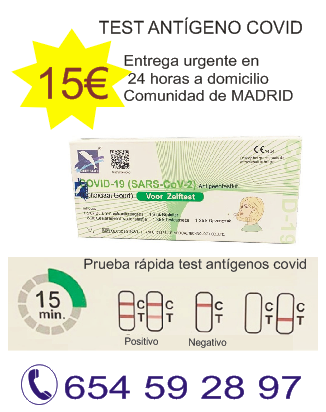 Entrega urgente en 24 horas a domicilio en la Comunidad de Madrid Test Antígenos Covid.